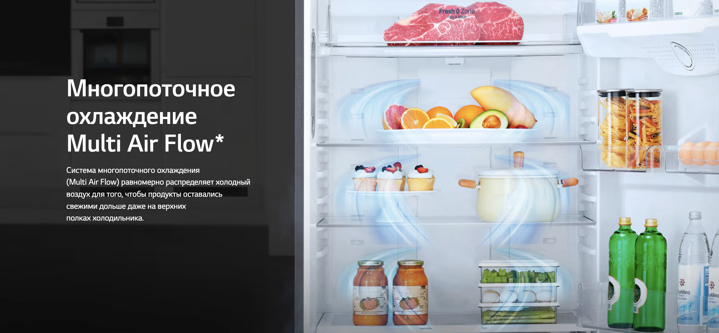 БрендLG Класс энергоэффективностиА+ Система охлажденияNO FROST Перенавешиваемые двериДа Количество отделений в морозильной камере3 Полезный объем морозильной камеры107 л Полезный объем холодильной камеры277 л