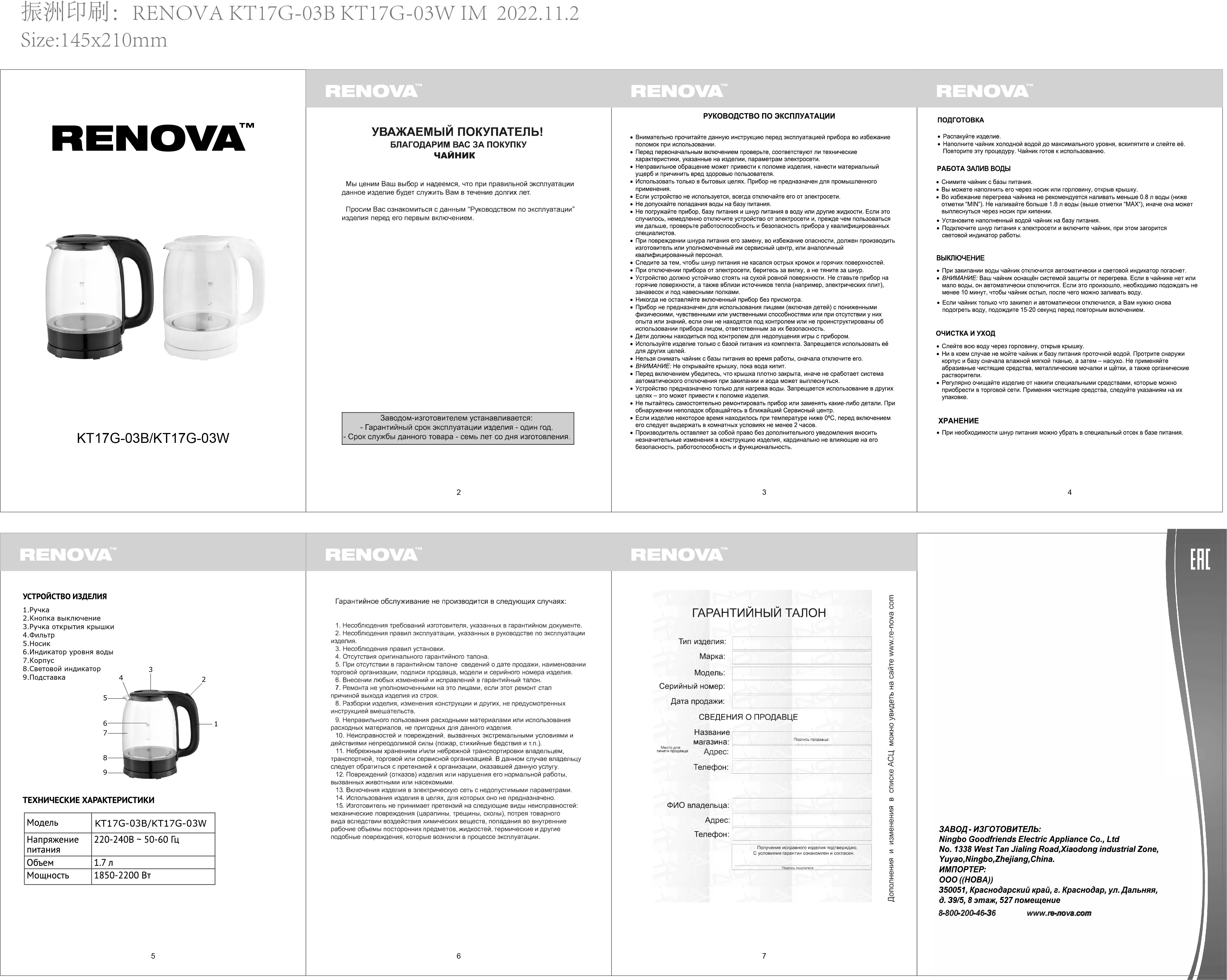 Электрочайник Renova KT17G-03B 1.7 л черный