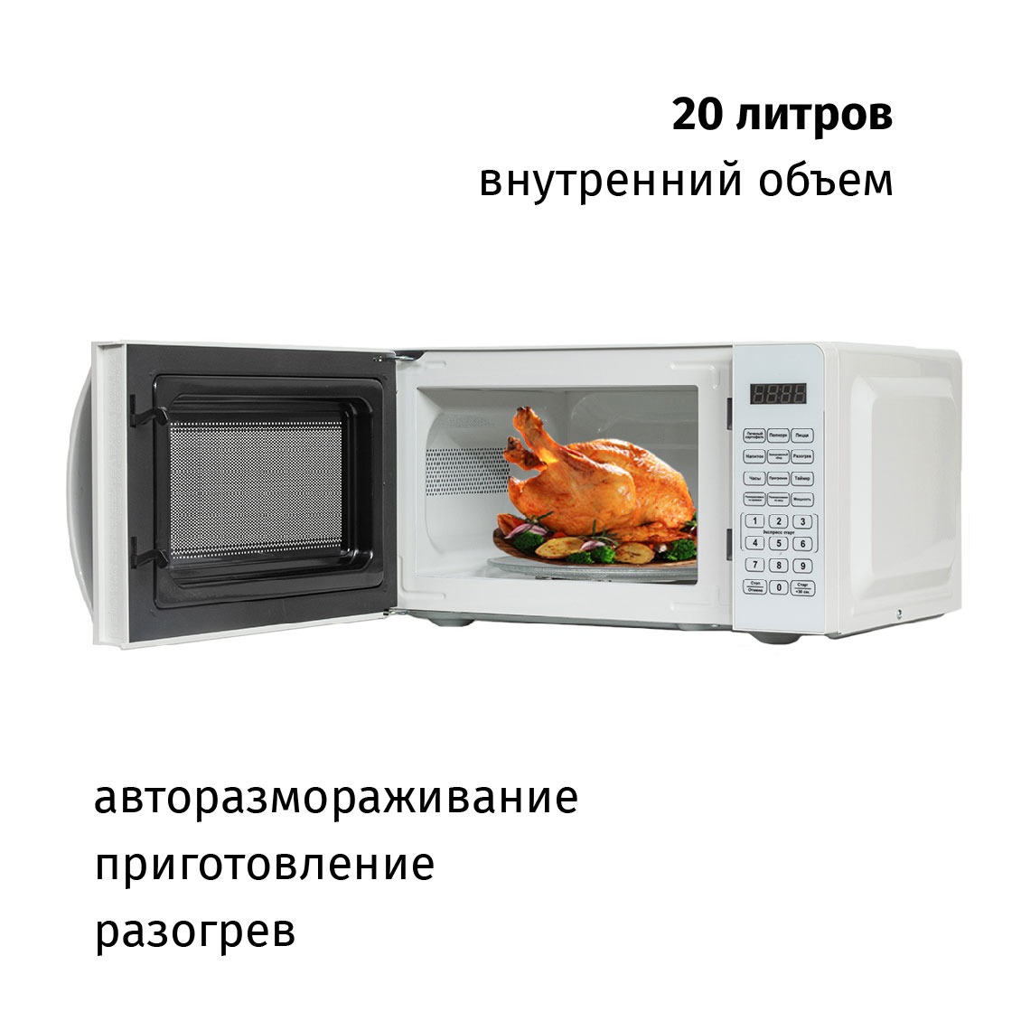 Компактная 20-литровая печь не займет много места, а приготовление или разогрев пищи с ее помощью не потребует много времени. Несомненное достоинство этой микроволновой печи - удобное и понятное механическое управление (выбор мощности и времени работы). Благодаря внутреннему эмалевому покрытию, камеру СВЧ-печи легко мыть, она неприхотлива и проста в обращении.