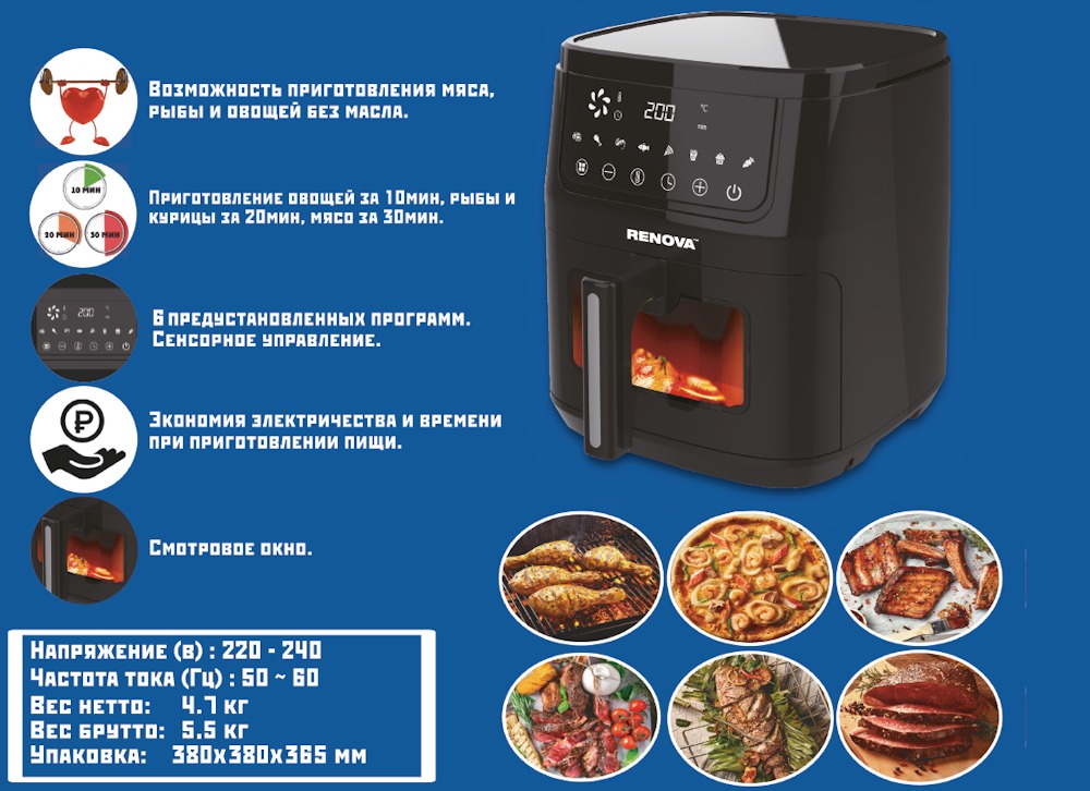 Аэрогриль Renova AF7-DTB1 1600 Вт 7л черный