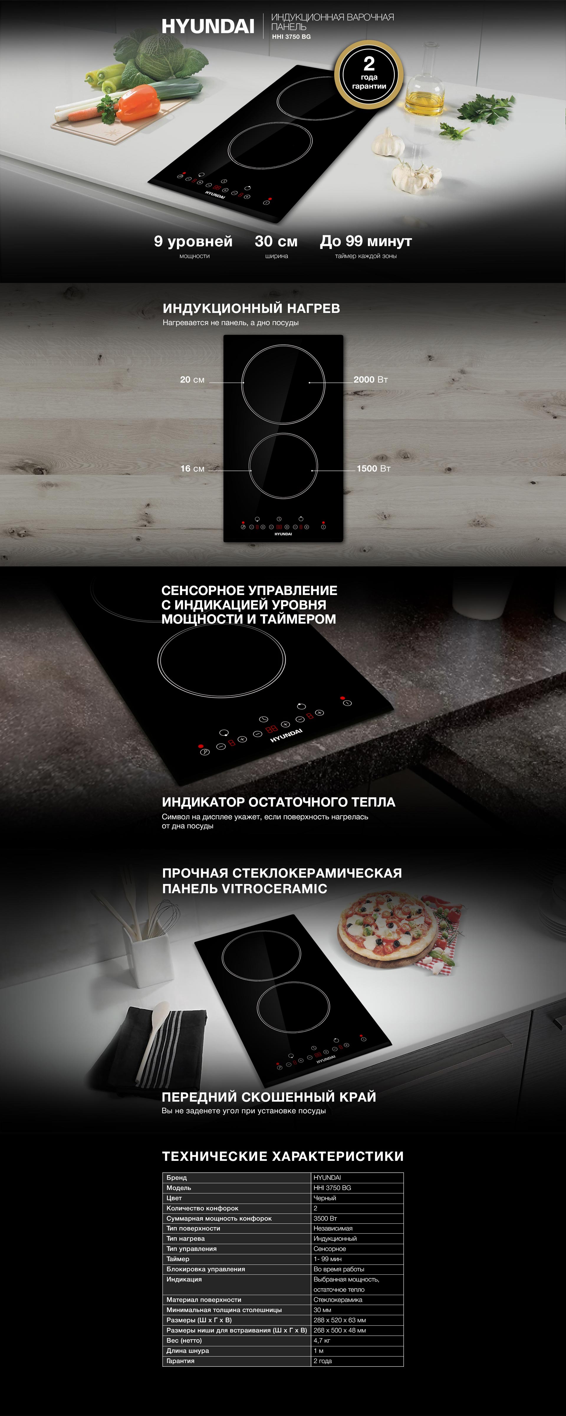 Варочная поверхность индукционная Hyundai HHI 3750 BG черный