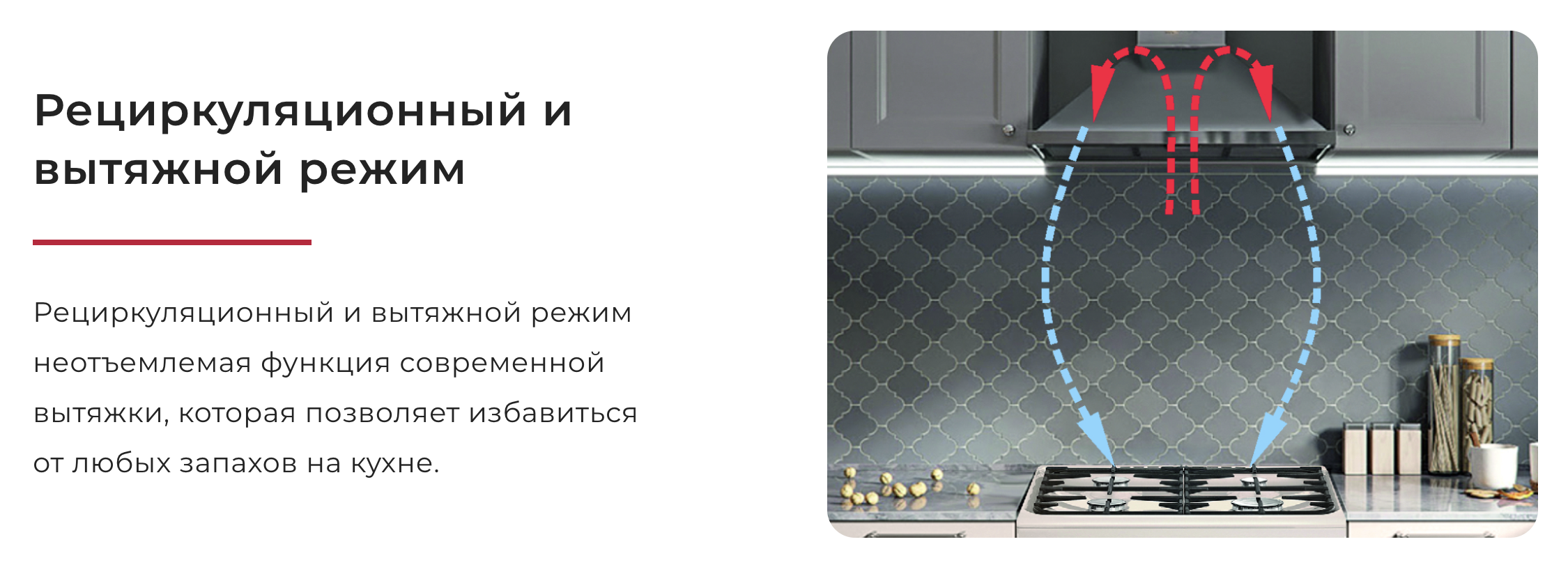 Если вытяжка работает только в вытяжном режиме, ее вывод обязательно должен быть на улицу или в дымоход. Рециркуляционный режим позволяет не подключаться к дымоходу, так как вытяжка пропускает грязный воздух через себя, и возвращает обратно в помещение чистый.