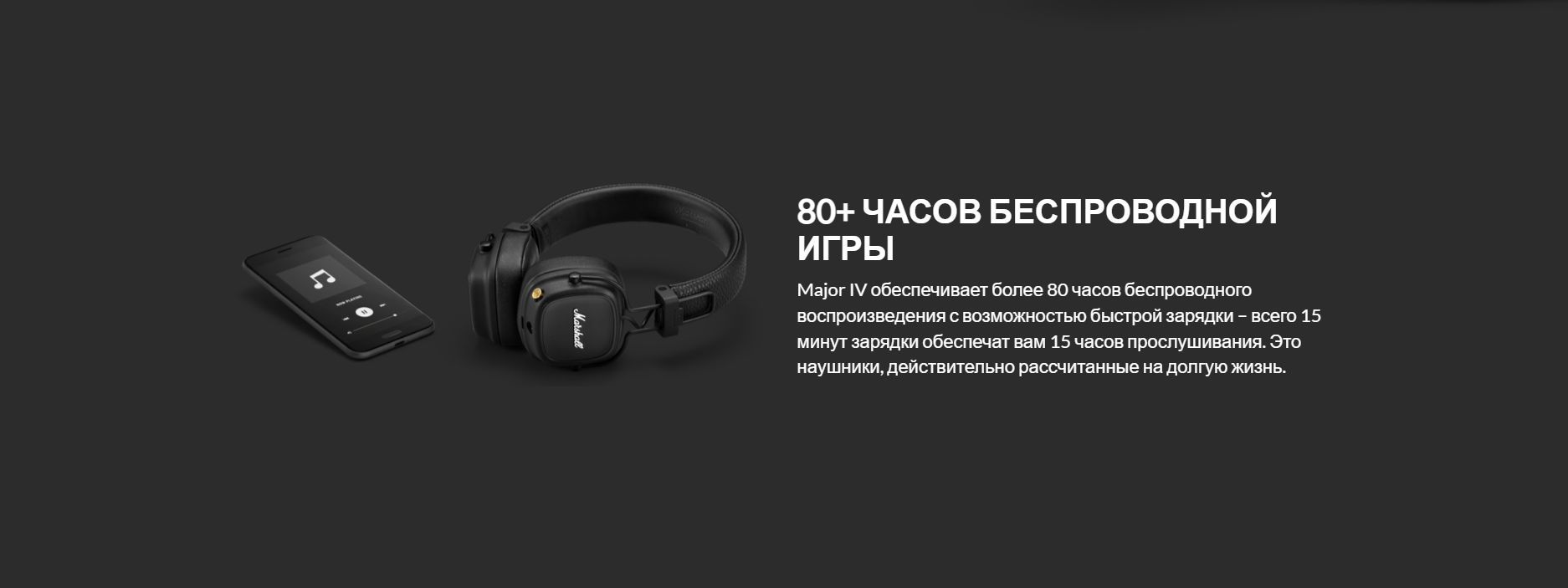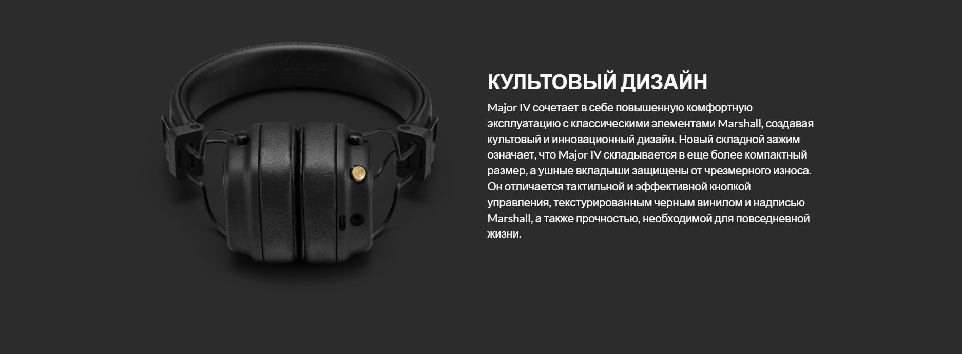Соответствующая аудиоформату 2.0 Bluetooth-гарнитура Marshall Major IV станет отличным выбором для любителей музыки.