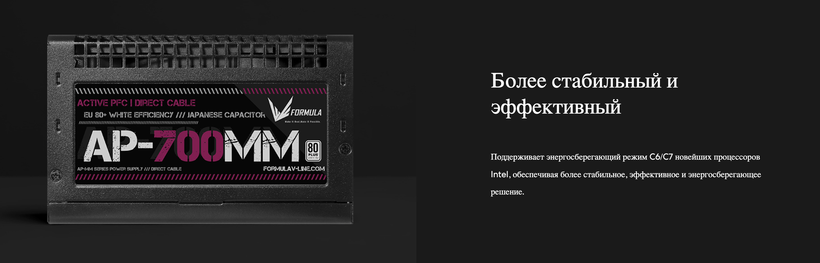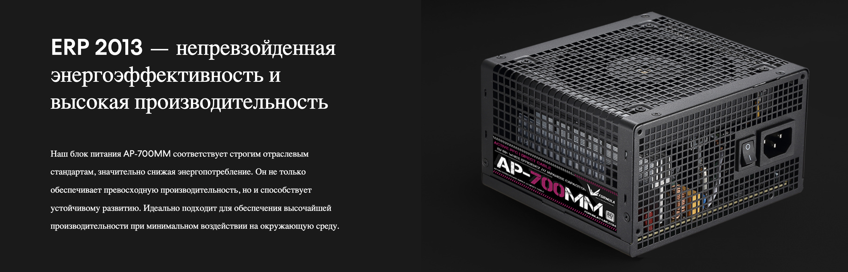 Оцените надежную и эффективную подачу электроэнергии с нашим блоком питания AP-700MM, соответствующим стандарту ЕС 80 PLUS 230 В.