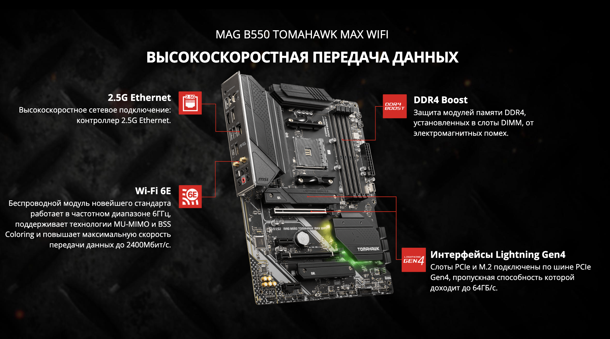Материнская плата MSI MAG B550 TOMAHAWK MAX WIFI DDR4 Socket AM4 AMD B550 ATX