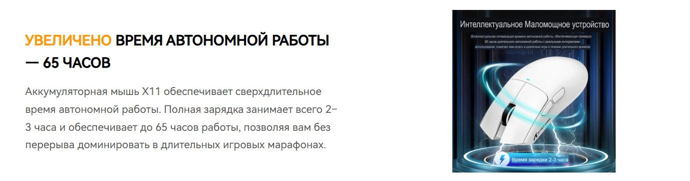 - Время автономной работы мыши: до 65 часов
