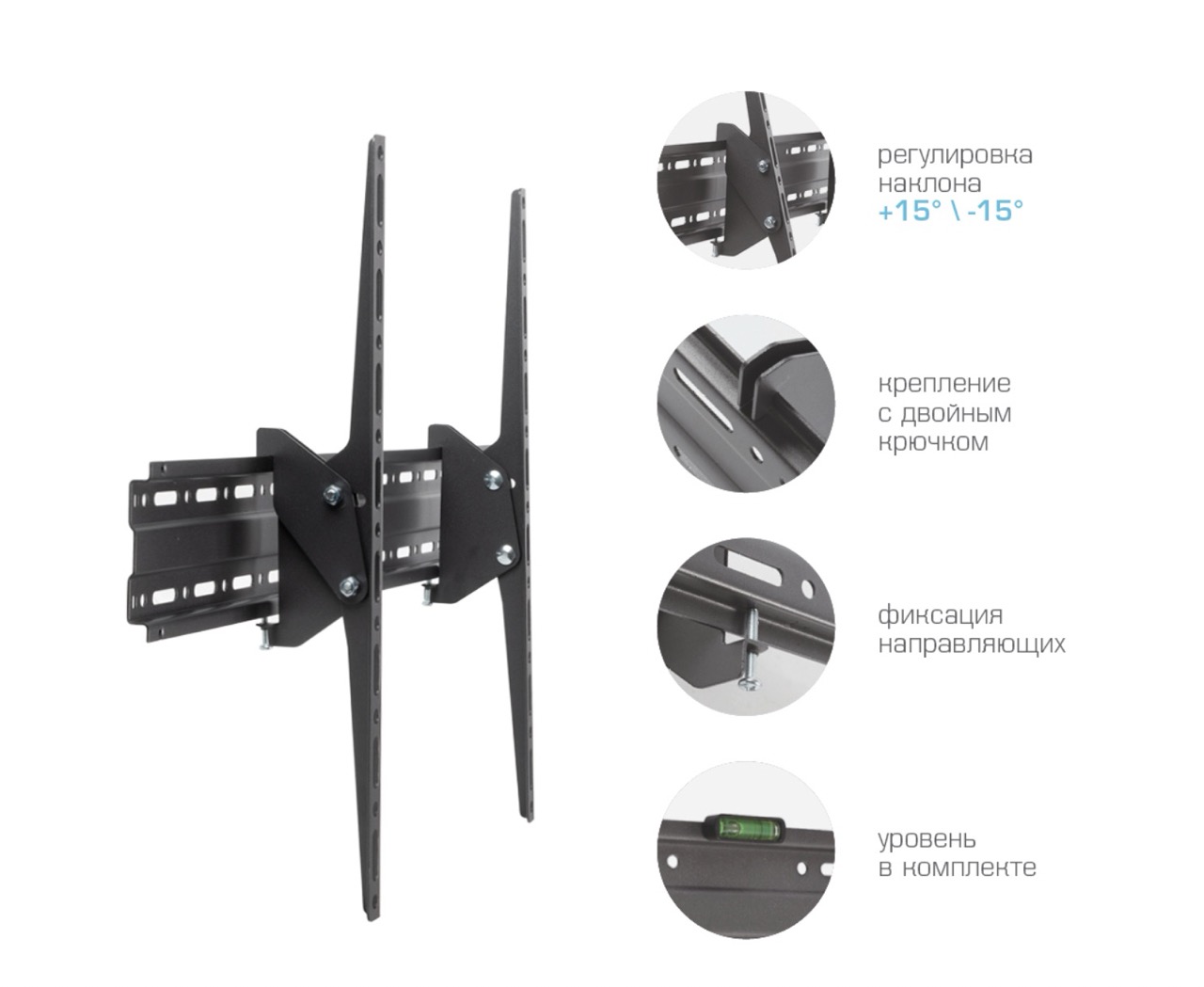 БрендArm media Тип VESA50х50, 75x75, 100x100, 200x100, 200x200, 300x200, 300x300, 400х200, 400x300, 400х400, 600x400 Тип установкиНастенный Максимальный вес телевизора55 кг Минимальная диагональ телевизора32 Максимальная диагональ телевизора90 " РегулировкаНаклонный