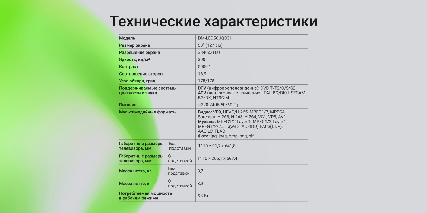 Телевизор Smart TV Digma DM-LED50UQB31 50" 3840x2160 QLED