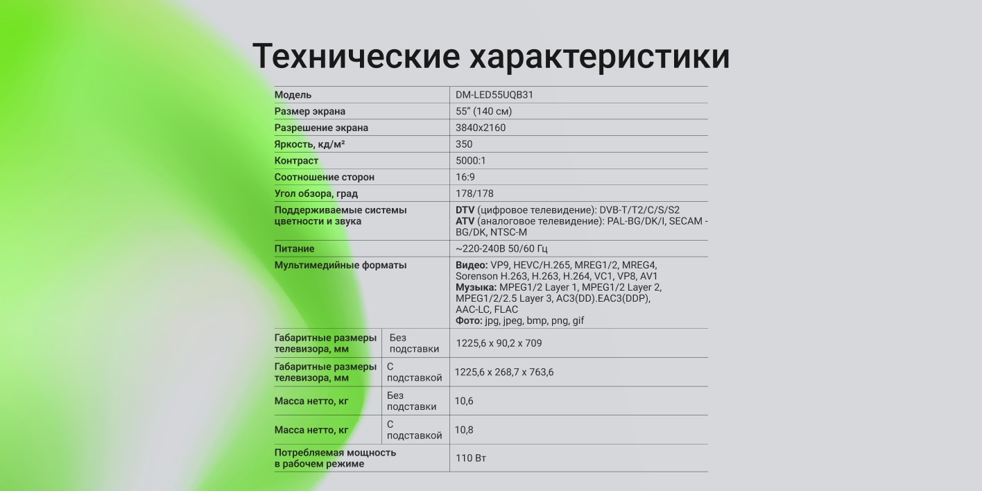 Телевизор Smart TV Digma DM-LED55UQB31 55" 3840x2160 QLED