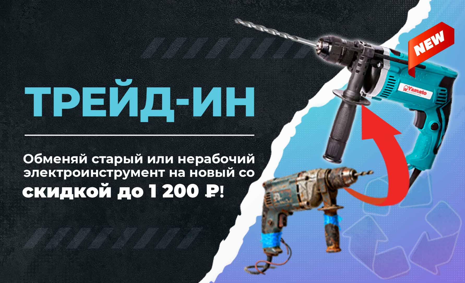 Благодаря трейд-ин вы можете сдать свой старый или нерабочий инструмент (любого бренда) и получить скидку на новый. Это выгодно потому, что вы не только экономите на покупке нового инструмента, но и не приходится возиться с продажей или ремонтом старого устройства — достаточно отдать его нам и взять новый по выгодной цене!